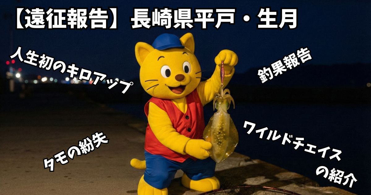 長崎県平戸・生月にてワイルドチェイスで人生初のキロアップアオリイカをキャッチ!2025年11月下旬の釣果とタモ紛失トラブル報告。